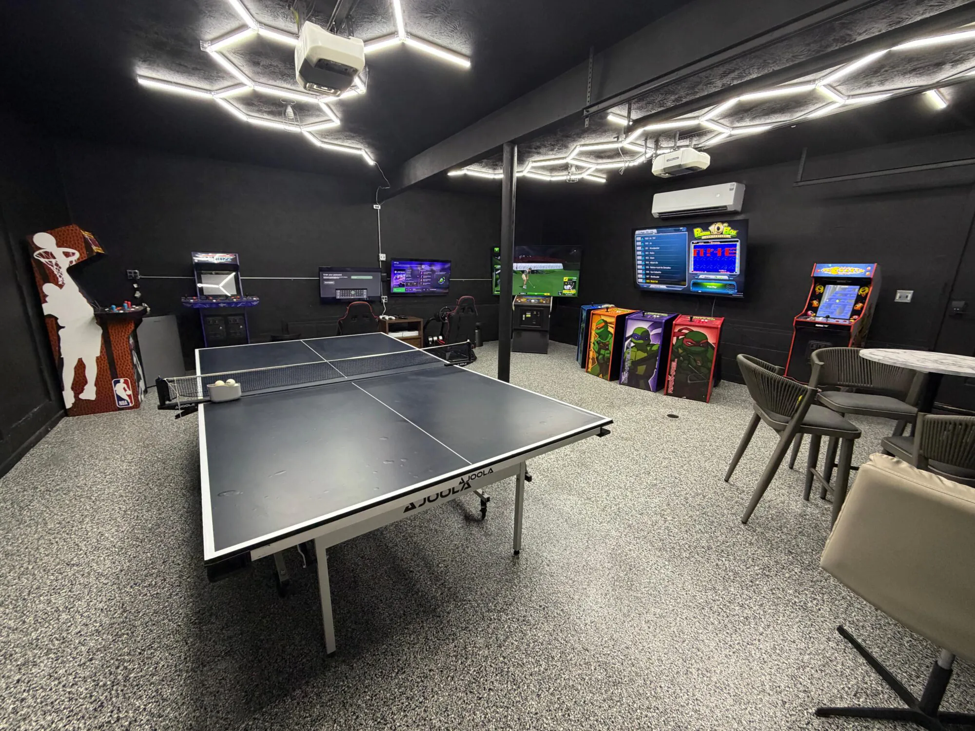 - 6-person hot tub Sauna Full arcade with Golden Tee, ping pong & more classics